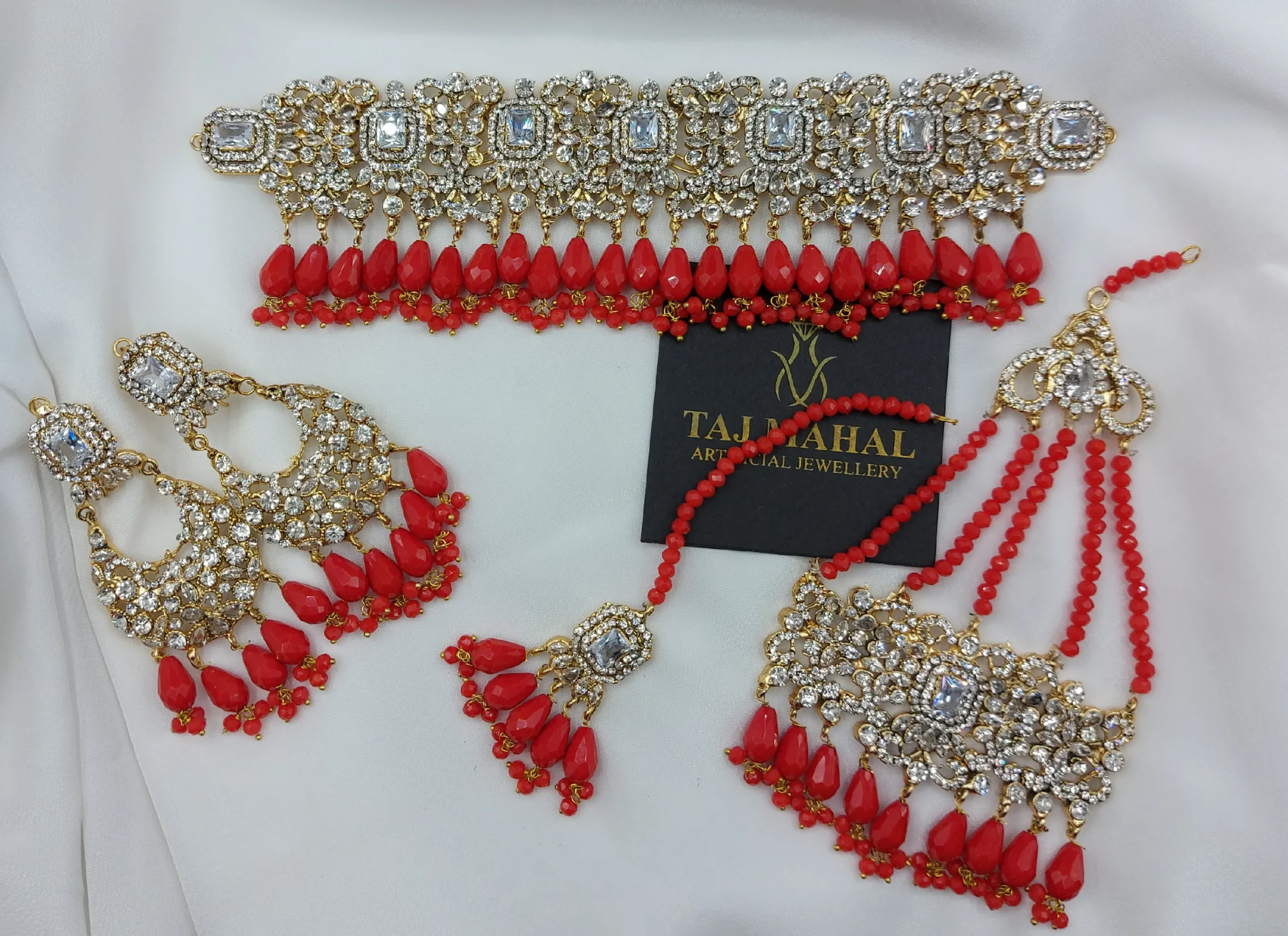 Bridal Jewelry Set – 4 Piece Choker, Earrings, Tikka & Jhumar