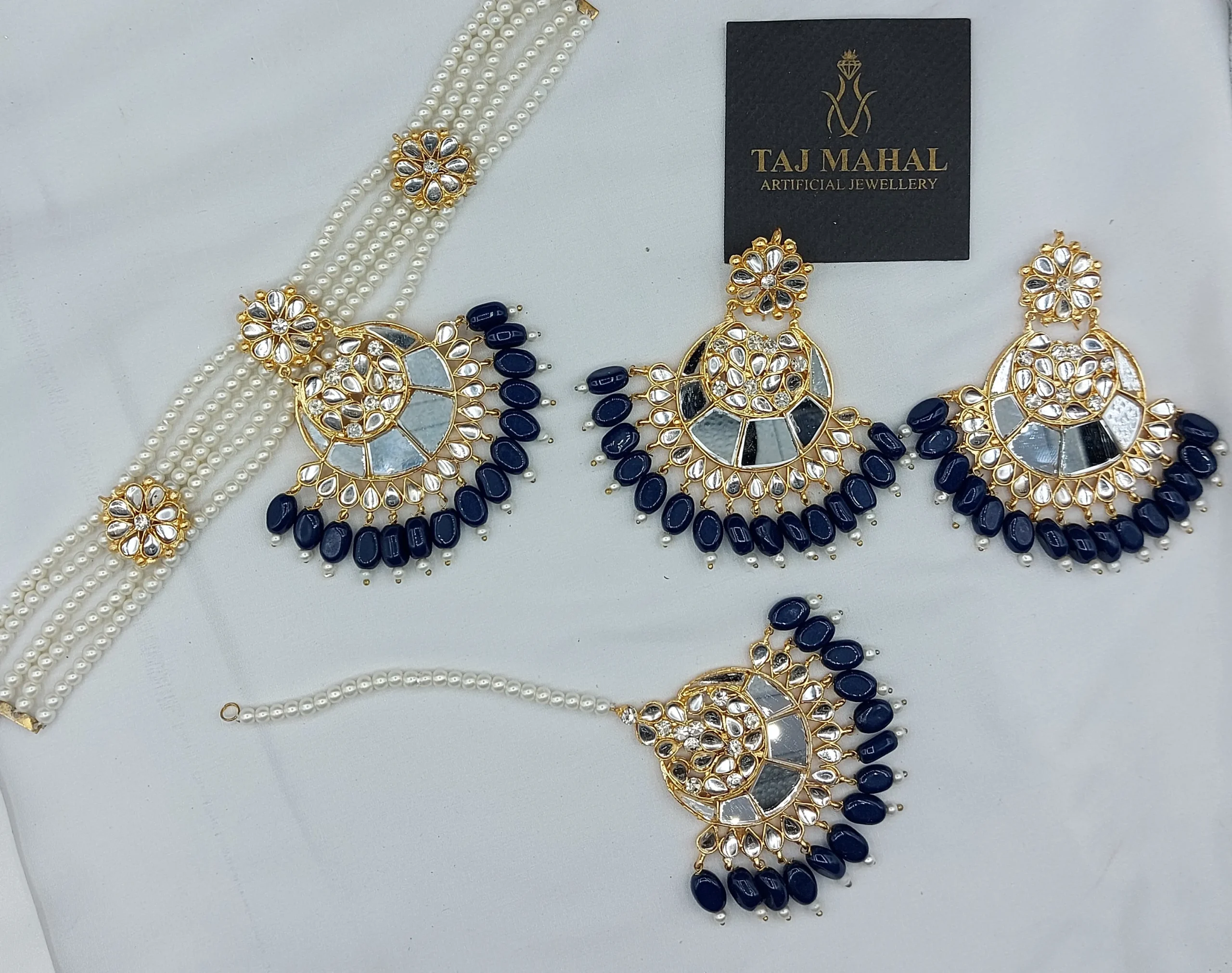 • Set Includes: Multi-strand Pearl Choker, Matching Chandbali Earrings, aur ek nafees Maang Tikka.