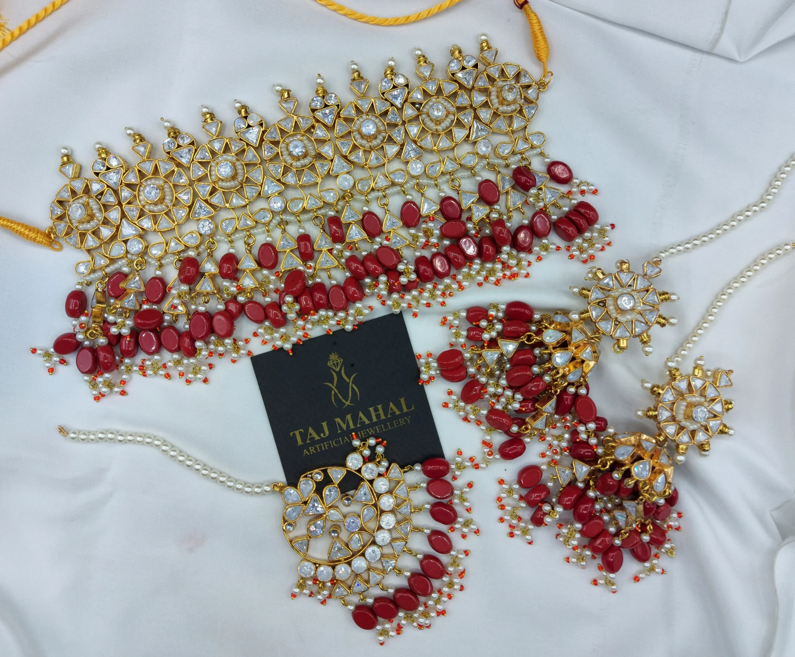 Be the first to review “Grand Kundan Choker Bridal Set with Ruby Red Beads & Pearls – 3 Piece Necklace, Earrings & Tikka”