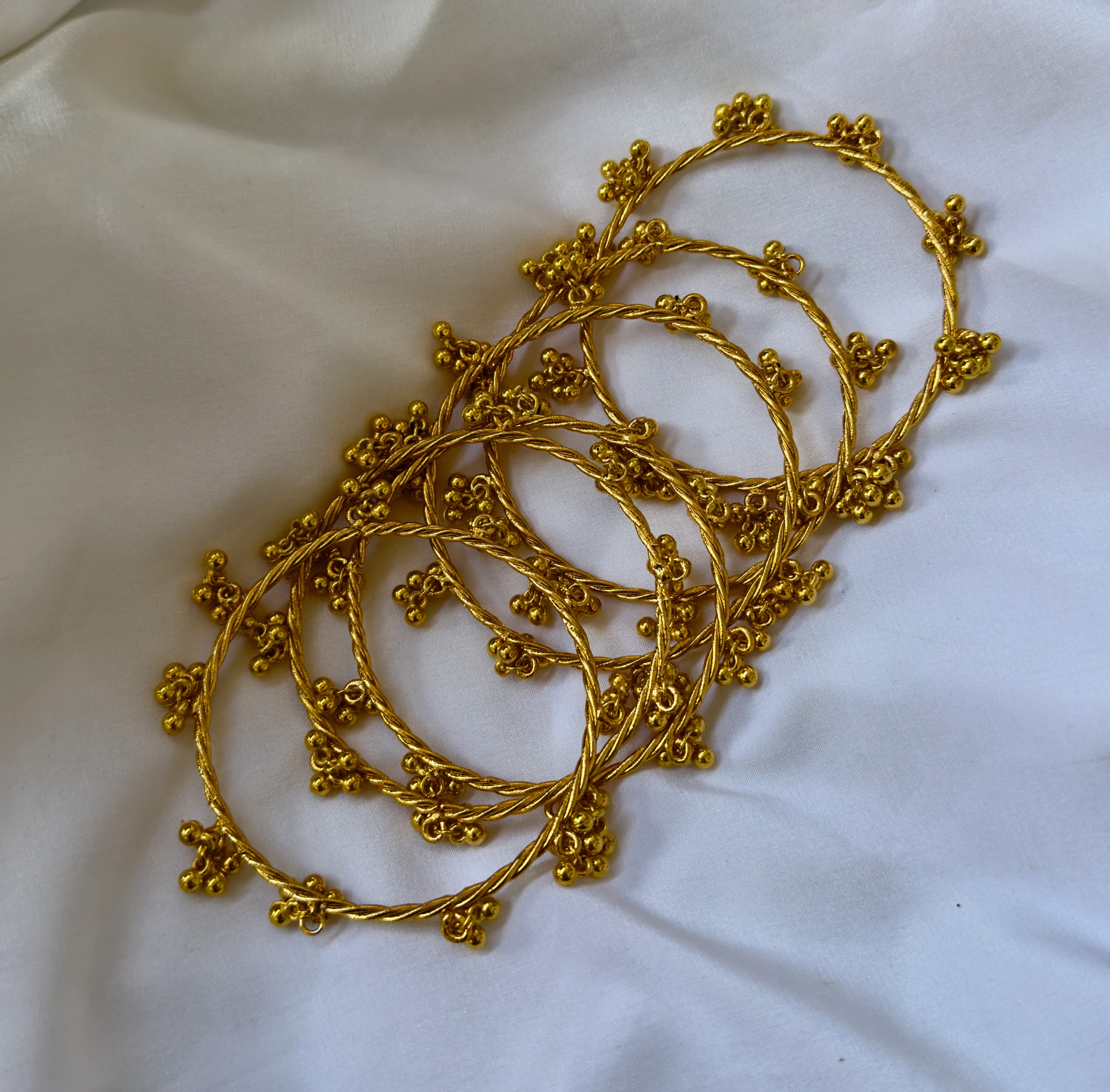 Design: Twisted metalwork with small bead clusters (Ghungroo style).